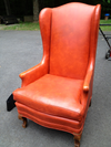 Here's the orange vinyl chair once we got it home.