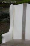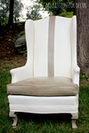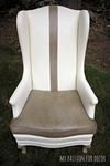 I liked the creamy color, but I really felt the chair needed something else. I added a thick stripe down the middle of the chair by using my trusty Frog Tape. I measured off the middle of the chair back then went out a few inches on each side and tape it off. I painted the stripe in French Linen Chalk Paint®. I decided I wanted to paint the cushion and front two legs in the same French Linen color. When I was done, I applied a mix of dark and clear soft wax only on the French Linen painted areas. I wanted these areas to have a bit more depth. I was going for modern, funky and fresh, not distressed so I used the dark wax sparingly. French Linen is one of my favorite Annie Sloan colors because of it's depth of color and versatility. It's a great neutral without being boring.