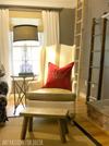 This is a picture of the chair in its new home....my family room. I'm not revealing too much of the new family room right now because that's a post for another day. I've taken this room in a new direction and I can't wait to share it with you!