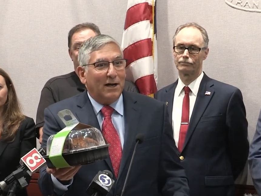 Legislative Republicans appeared at a press conference with an assortment of prepared items including rotisserie chicken and salad. Senate Republican leader Len Fasano said the scope of what qualifies as “prepared food” has changed dramatically since the time the law was passed.
