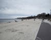 Niantic beaches, like T-shirts, come in small, medium, and large. At the small end is Hole-in-the-Wall Beach, tucked between a stone jetty and a grassy park (more on that below). It is also the Western terminus of the Niantic Bay Boardwalk. The Boardwalk runs parallel to the train tracks, with a view of the Bay and Long Island Sound. A number of benches face the water. You’re fully connected to the outside world here, between the Millstone Power Station and passing Amtrak trains, yet the walkwayfeels sheltered and calm.