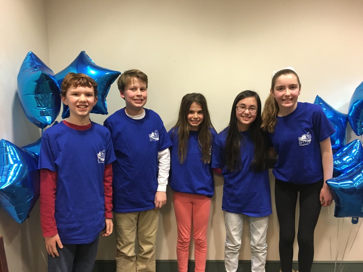 Danny Flanagan, Reagan Ward, Charlotte Murphy (team captain), Shannon White, and Tristan Nee represented Pomperaug Elementary School (PES) as members of the team “Ciccone’s Army” to win the 2018 Region 15 Nutmeg Book Bowl.