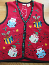 My evite arrived a few weeks ago, so I had plenty of time to hunt for an ugly Christmas sweater... or so I thought. I've seen photos of them on Facebook and in old movies, but I had no idea where to get one. I thought I would visit a thrift shop, but the thought of digging through the piles of sweaters to find the perfect one seemed overwhelming, so I took to the only place I knew I could find the perfect sweater - eBay. On a hopping Saturday night, I sat by my computer and found the perfect sweater vest, complete with Santa, reindeer, and elf appliques, sequins, and holly leaf buttons. I sat vigil by the screen until I entered my bid with 15 seconds left and swiftly won my first ugly sweater auction!