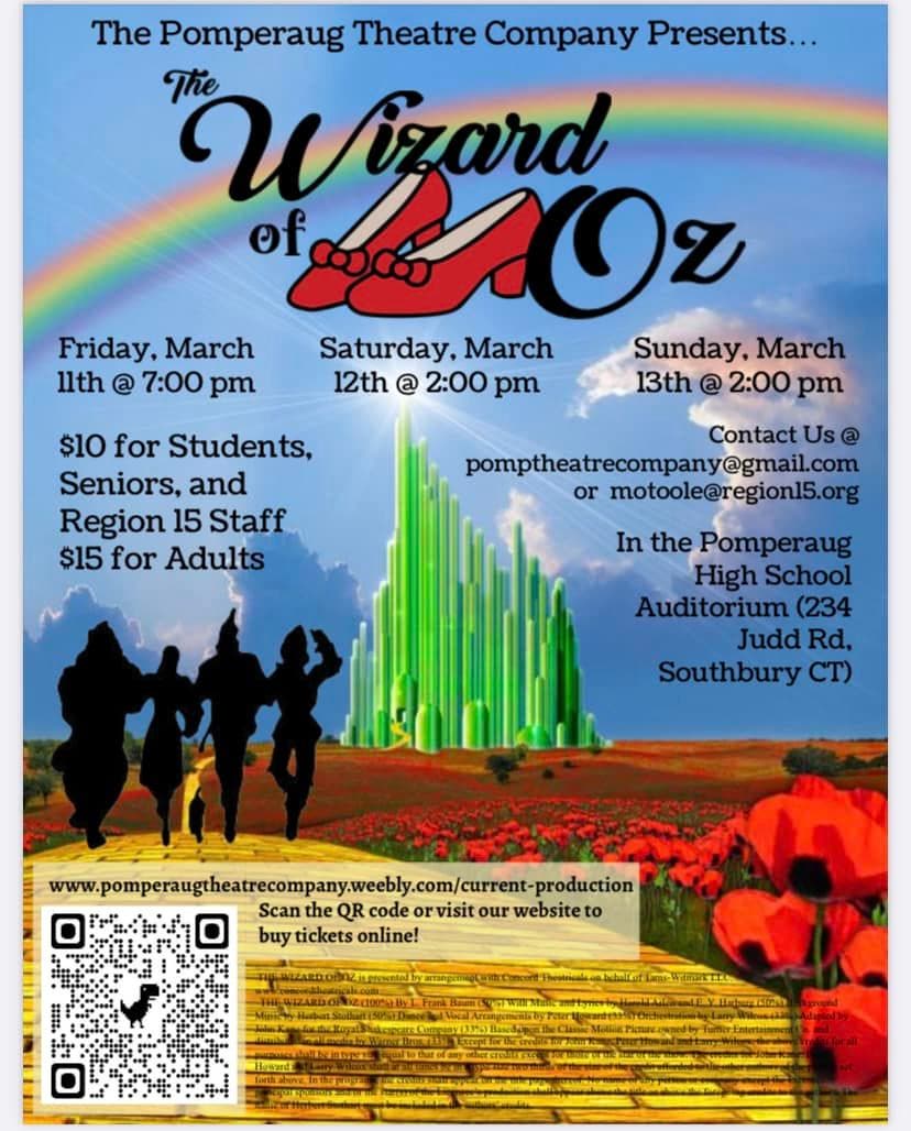 SOUTHBURY - Pomperaug Theatre Company’s current production is “The Wizard of Oz.” Pomperaug Theatre Company is part of Pomperaug High School in Southbury, CT. It is a student-run theatre program and the students are under the direction of Madge O’Toole.