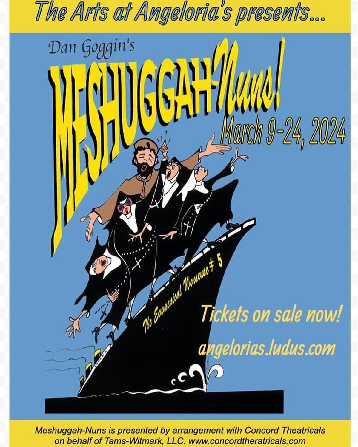 “Meshuggah-Nuns, The Ecumenical Nunsense” is another show in the “Nunsense” series with book, music, and lyrics by Dan Goggin, and orchestration by Leo P. Carusone, Director of Theatre at my alma mater, Sacred Heart University. The Arts at Angeloria’s in Southington is inviting audiences to climb aboard the “S.S.Golden Delicious in the ‘Apple of the Eden Line’' that has taken over their unique venue through March 24.