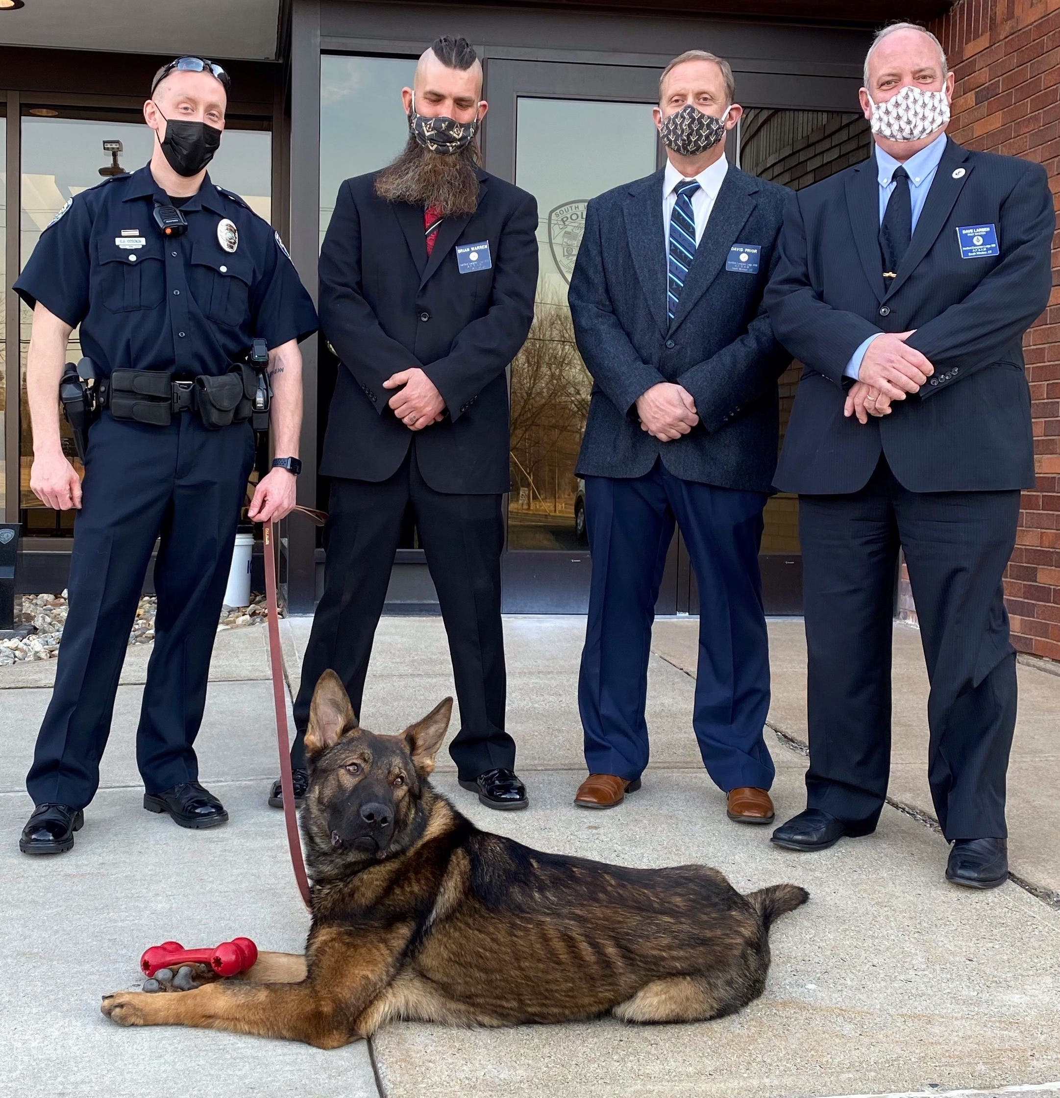 The canine program has been reactivated a generous donation from the Hartford-Evergreen Masonic Lodge #88, based in South Windsor. The Free Masons philanthropic efforts have benefited the South Windsor Police Department on multiple occasions over the years, including development of a mountain bike unit and early adoption of police body-worn cameras.