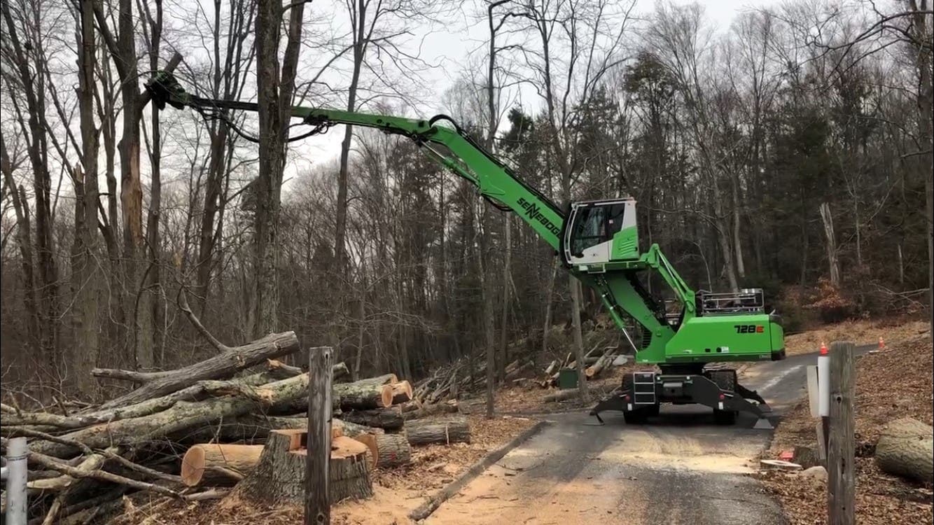 "This machine is incredible," Schambach said as he, Sitler and Yerke watched the Sennebogen and Levesque take down one tree after another.