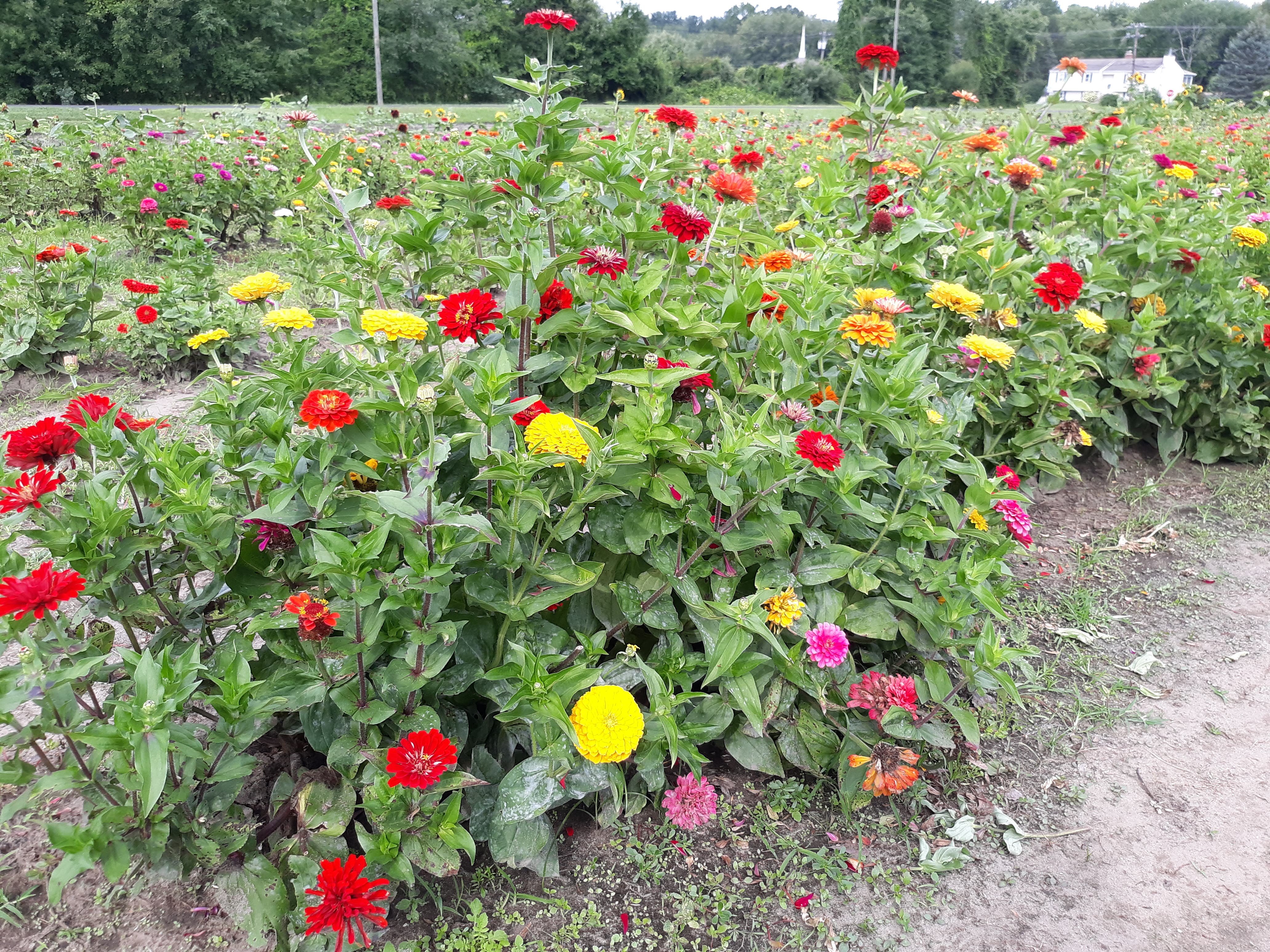 Owners Susan and Russell Petersen offer 2 acres of pick-your-own annuals and perennials from July to September at a cost of $8 per pound. They started as a pumpkin patch, but changed to flowers in 2003. Vegetables are also available in the stand bordering Foster Road.