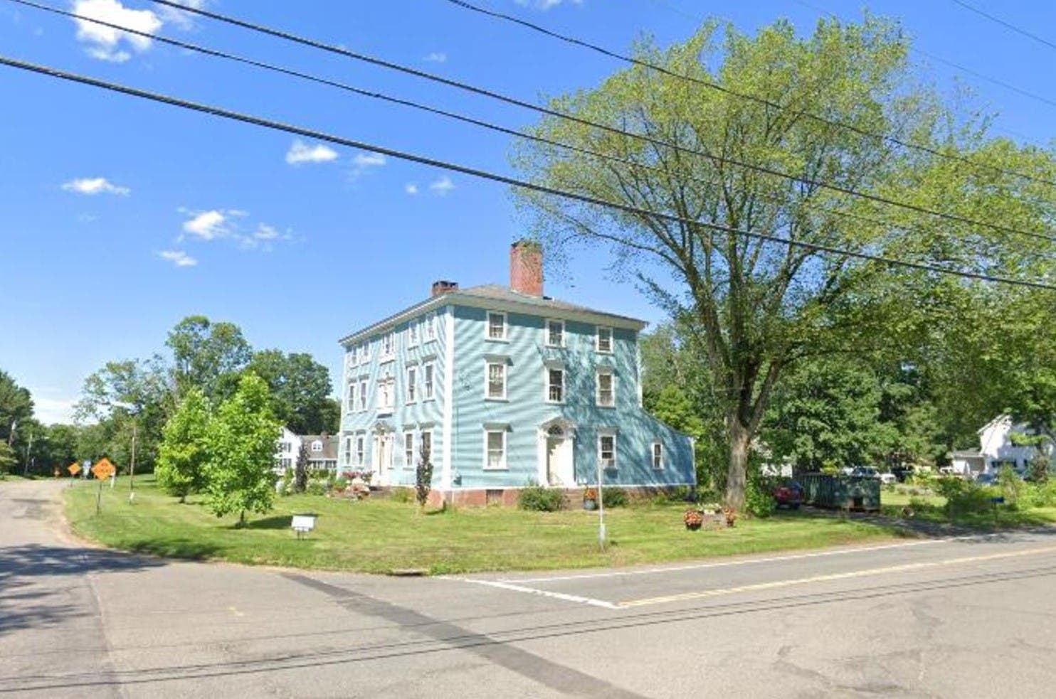 This 3-story, 16-room house at the corner of Main Street and Sullivan Ave. was built in 1760, according to town land records, or 1789, according to the book. Known as the John Watson House, it is diagonally across from the East Windsor Hill post office at 1876 Main Street, and contains 6,882 square feet of living space.