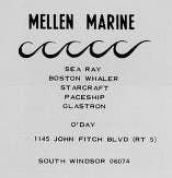 Founded by Richard Mellen and George Winther, Mellen Marine sold and serviced name brand boats, including Sea Ray, Boston Whaler and Starcraft. For many years, the business supported South Windsor High School by advertising in its yearbook, The Centurion. The earliest ad we could find was from page 199 of the 1974 edition, seen below.