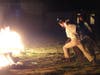 Residents, in turn, got the opportunity to see how movies get made. They were treated to seeing the filming of one scene in which an actor was thrown into a fire - actually onto a bed set up between two fires blazing - by two other actors.