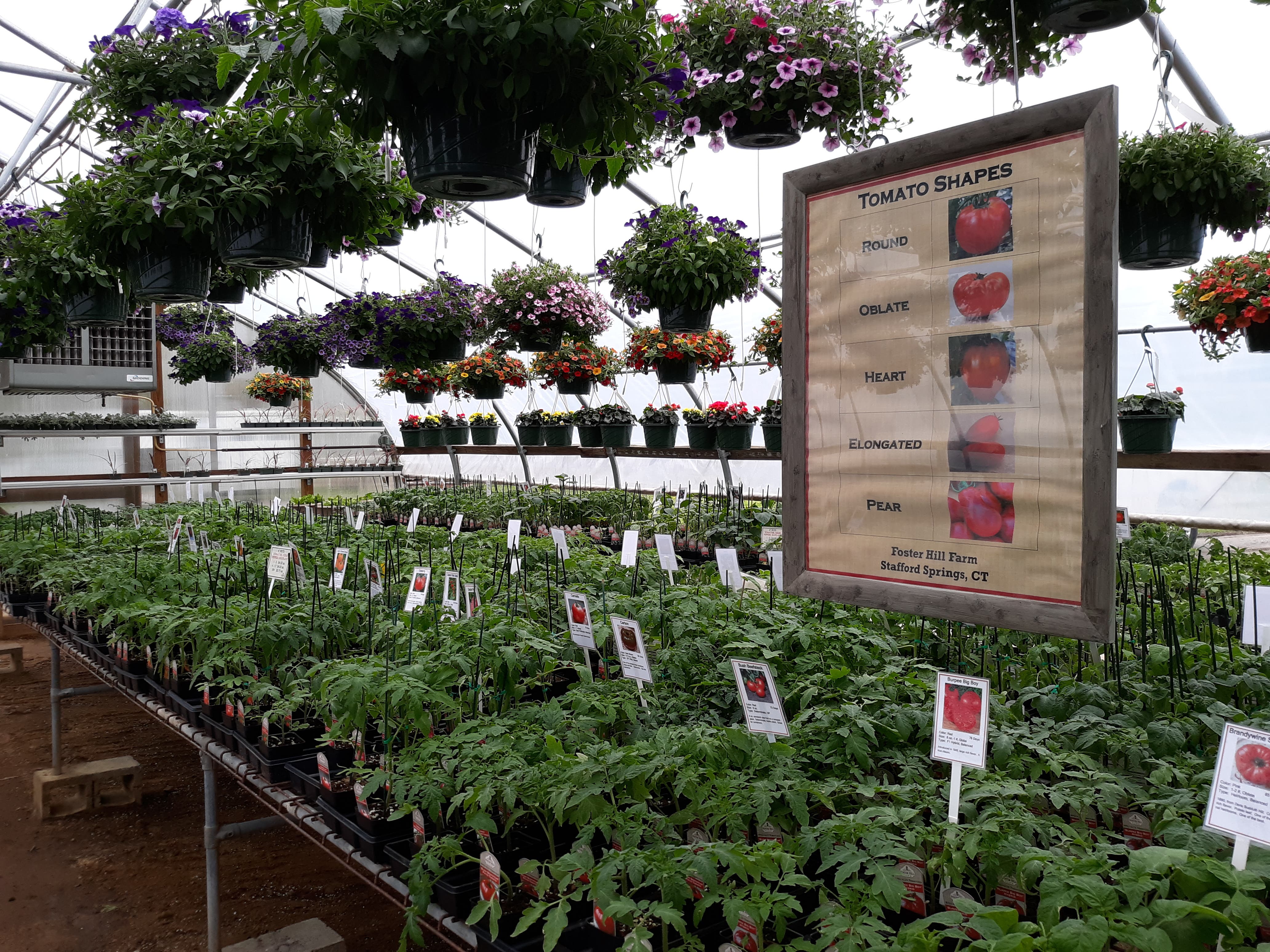 The selection of products available at Foster Hill Farm is staggering. From hanging baskets with thunbergia, scented geraniums, over 80 varieties of herbs and basil and more than 40 types of specialty peppers - nearly everything desired by those with a green thumb may be found here.