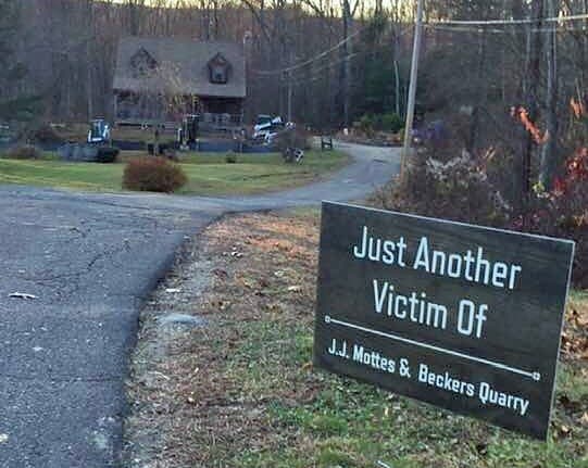 On one corner of the property stood a sign that read, "Just another victim of ... J.J. Mottes & Beckers Quarry ..." It was a reference to the infamous source of a bad batch of concrete infected with the mineral pyrrhotite that has weakened hundreds of homes in the area.