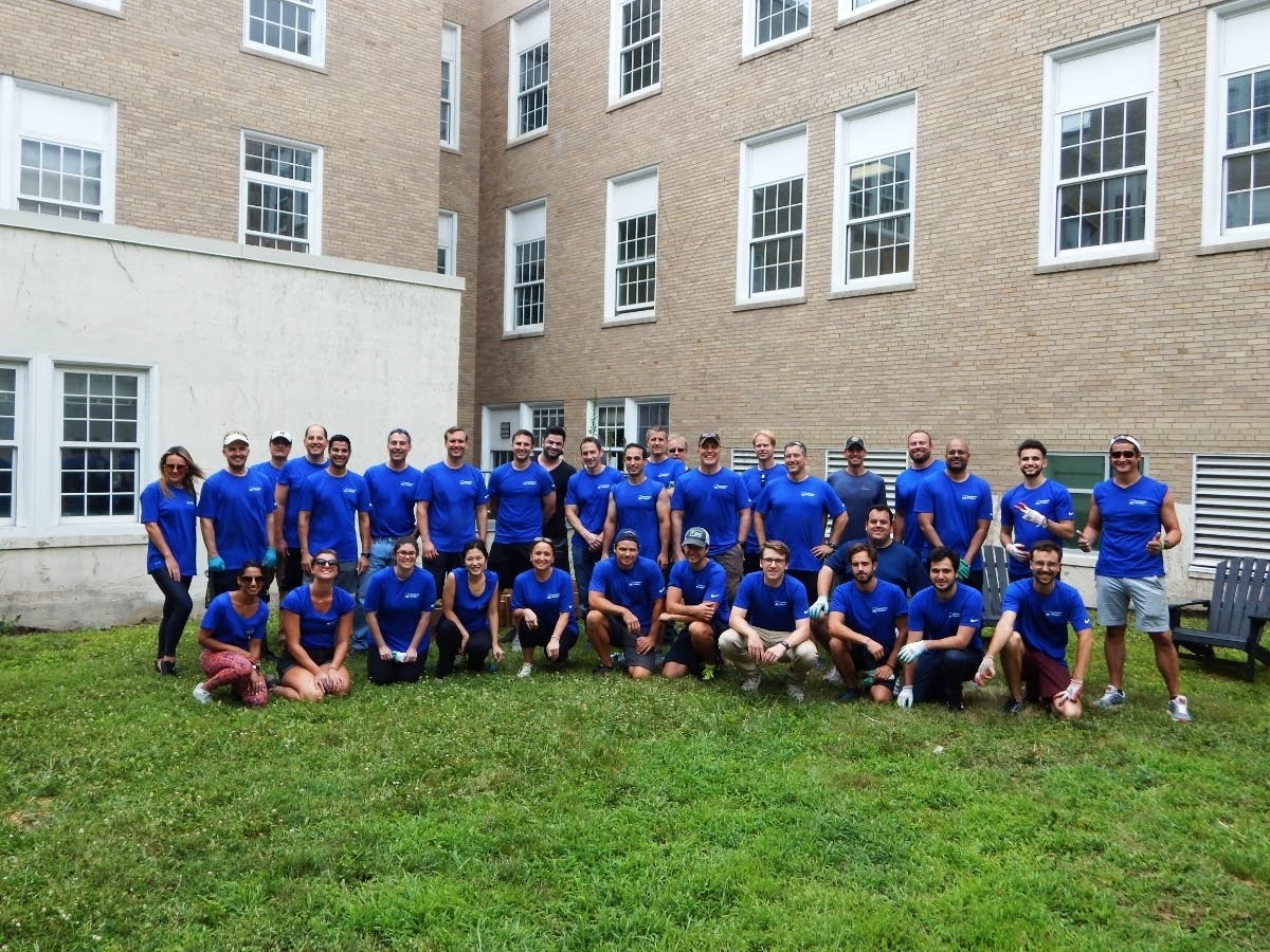 On Thursday, July 11, approximately 60 volunteers from AXA Investment Mangers (AXAIM), headquartered in Greenwich, CT, shed their business attire in exchange for workpants and gardening gloves as part of AXA’s Global CR Week 2019. They joined their local charity partner, the Stamford Public Education Foundation (SPEF), at Stamford High School, along with supporters from the school’s Governance Council and a representative from Bartlett Arboretum & Gardens, to completely transform two, un-used courtyards as well as and the front entrance of the school. SPEF organized this school clean-up in conjunction with its mission of bridging the gap between Stamford Public Schools and the business community. At this 2019 AXA Hearts in Action event, volunteers worked together to help revitalize the school’s courtyards and grounds through a variety of landscaping tasks (including mulching, weeding, constructing planters, planting flowers, painting). With the support of the hardworking and committed AXA IM volunteers, students will be able to enjoy an outdoor oasis for studying, taking classes, and networking when arriving back at school this Fall.