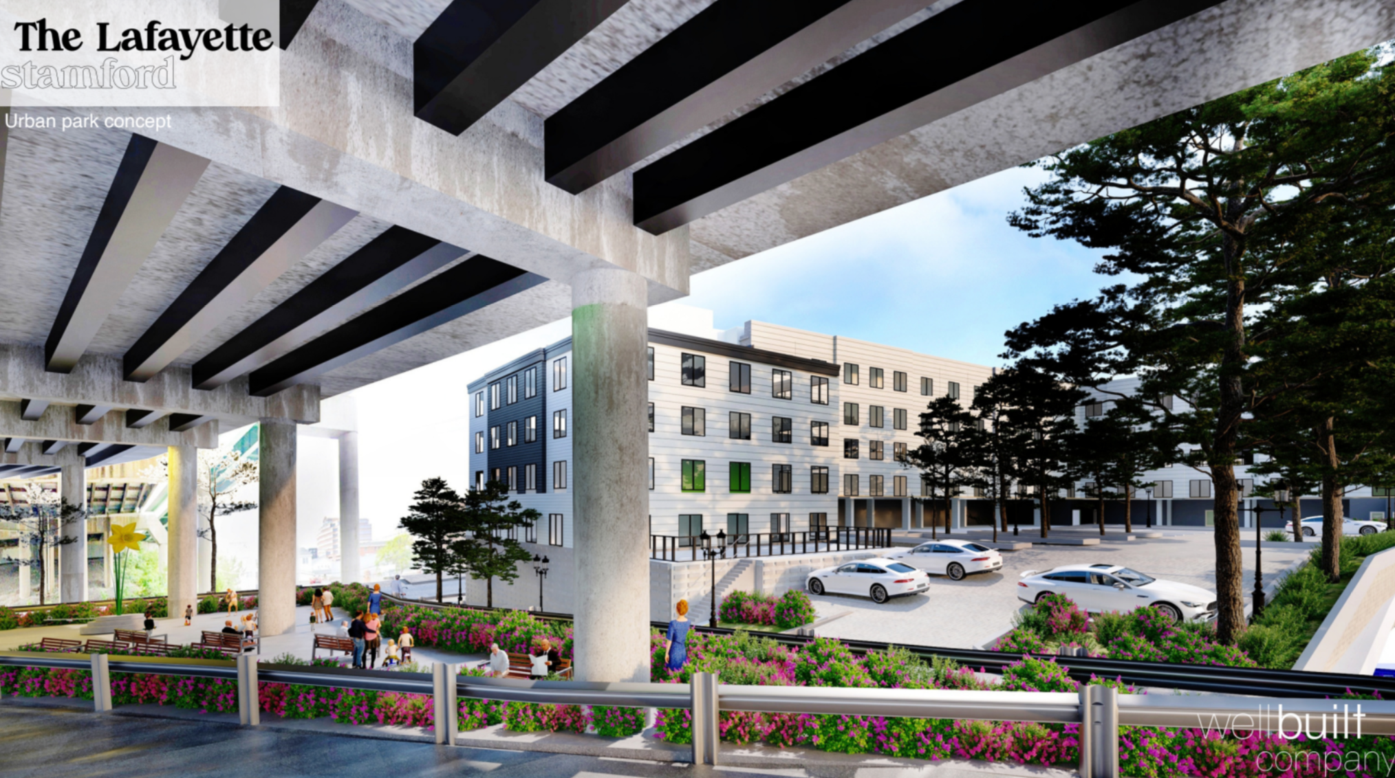 The project appeared in its latest iteration before the Stamford Zoning Board last week. Originally approved for 86 units, the developer Wellbuilt Company acquired additional parcels and has now expanded the project to include 130 units with a mix of studios, one and two bedrooms.