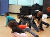 He introduced Richardson, his friend and associate choreographer who helped to lead the class. Richardson has worked with artists including Missy Elliot and Pitbull. Richardson led the children through a series of warm ups and then, along with Locust, began to teach them a series of steps. As they practiced both with and without music, they also took breaks to test the children's memory of the steps and to try a freestyle circle.