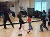 Locust and Richardson's enthusiasm held the children's attention throughout and they quickly picked up the dance, parents danced to the music and snapped pictures as they watched, and other kids in the crowd took time to watch parts of class before joining in.