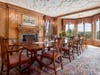 Fireplaces serve as a focal point for hand-carved paneled formal living and dining rooms, a cloakroom, library, conservatory and a breakfast room, according to the listing details.