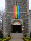 On Sunday, the First Congregation Church of Stamford held a dedication ceremony for the rainbow flag that is now displayed on their tower.