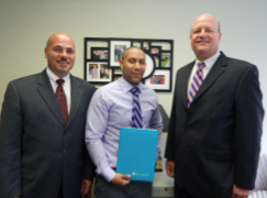Contributed photo: First County Bank’s Willard Miley and Mark Rosenbloom present SPEF CEO Matthew Quinones with a $3,000 grant.