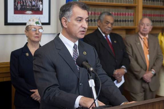 Contributed photo: state Sen. Carlo Leone of Stamford speaks at a Capitol press conference announcing Senate Democrats’ legislation to review and improve support services for women veterans returning from service.