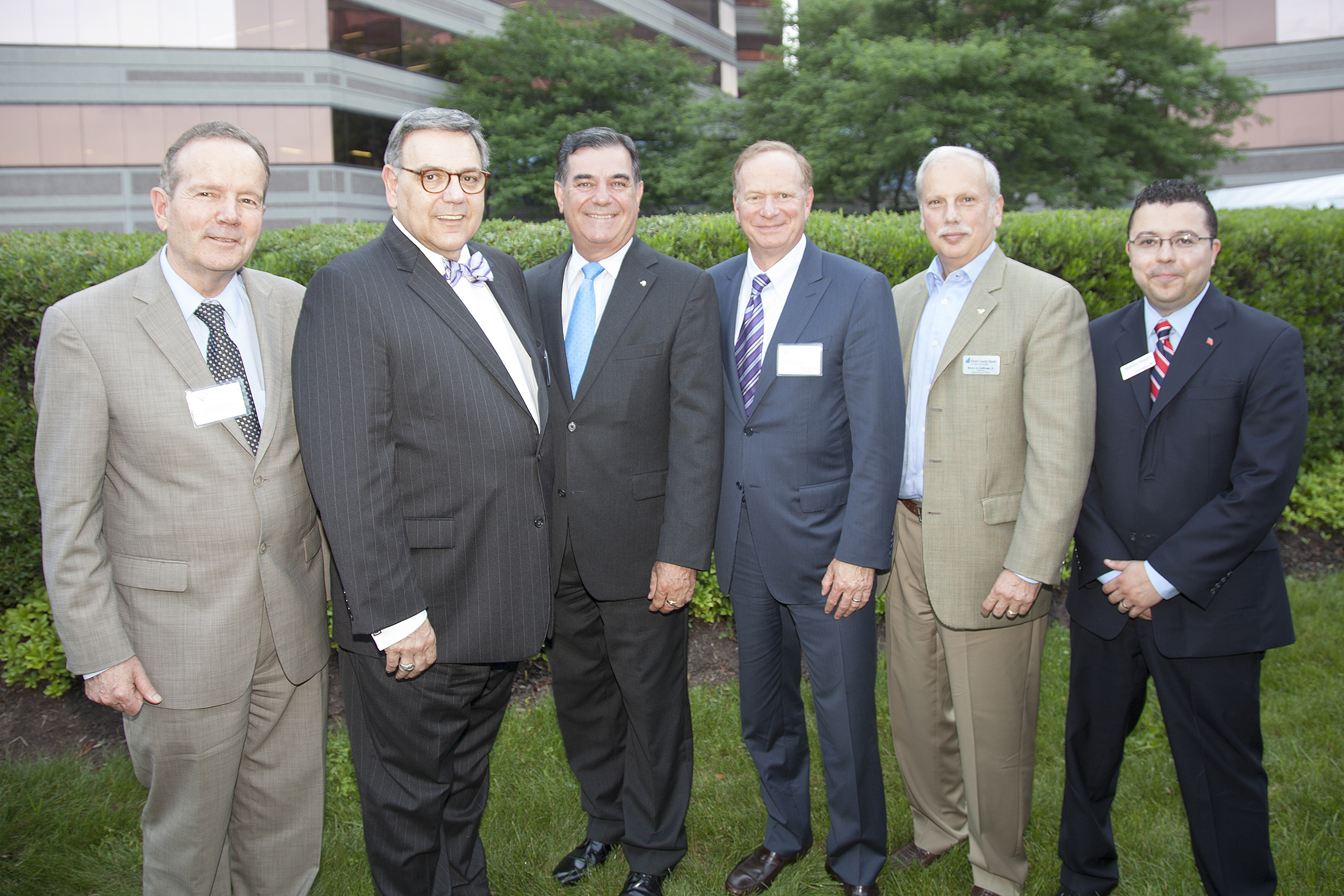 From left to right: Dr. John Chalykoff, Dean of the Welch College of Business, Sacred Heart University; Dr. John Petillo, President, Sacred Heart University; Stamford Mayor Michael Pavia; Ken Siegel, CAO & General Counsel, Starwood Hotels & Resorts; Renyo A. Giallongo, Chairman of the Board & CEO, First County Bank; and Nicholas S. Vazquez, Assistant Vice President, Corporate Responsibility, Bank of America.