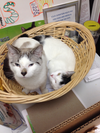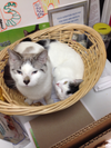 Ziggy(with his lovely blue eyes) and his sister Yoko (with her cherubic face)are simply adorable! Ziggy has checked out every inch of the shelter since arriving! Yoko took a day to adjust but has been letting her presence be known ever since! They are both affectionate, inquisitive, playful youngsters.