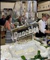 Duncklee Cooling and Heating in Stonington, CT, celebrated their 40th year in business with over 250 people attending on June 11th at their world headquarters, while the sky was raining down a few inches every hour. Jonathan Duncklee was smiling and greeting people, completely undaunted, “We earned this celebration, and no thunder and rain is going to keep us from enjoying ourselves,” as he stood just inside his building, where all of the warehouse garage style doors were open. The fields behind their offices were filling with cars and trucks, as loyal friends and Chambers members joined the celebration. Outside, balloon sculptures ten feet tall swayed in the breeze, as a small steel drum band played music under the tents. Inside the open warehouse where people mingled during the stormy weather were food and drinks, and a two foot tall ice sculpture bearing the number 40.