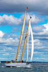 Two shots of the Mystic Seaport's Brilliant as it pulls away with the lead during Schoonerfest in New London the past summer.