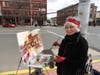 “It’s been such a mild winter. Terry and I have been coming here for many weeks,” Noreika says. “Now it’s not the most colorful time of year so right now I pick the people, traffic and signage” to paint.