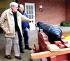 In May 2004 the cannon came back to Stonington and was stored at Howard Park’s workshop at the Four Starr Gallery at the Velvet Mill. Mr. Park created a reproduction gun carriage for the cannon. All of this work was done through the great generosity of volunteers and donors, especially Christopher Houlihan, who worked with the Maryland laboratory; Michael Davis, then president; Robert Snyder, Doug Currie, and Mr. and Mrs. James Coker.