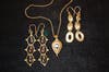 With gold prices so out-of-reach, browse the selection of Vermeil pieces, which are sterling silver plated with real gold. Handmade iolite, antique-style Vermeil earrings sell for $15.75, while a chain goes for $8.50 and modern disc dangle earrings for $16.85.