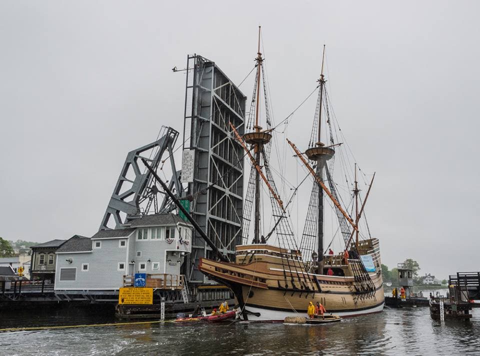 MAYFLOWER II started her journey home to Plymouth this morning. She is being towed to New Bedford where she will spend the night at State Pier. If all goes well, she will return to Plymouth tomorrow afternoon. We look forward to her return in December.