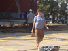 Ansel is joined by Maggie Wright, of Noank, a second generation shipwright; her father is Quent Wright, the Noank blacksmith. And there's Ali Mitchell, born on the Cape, raised in Florida but now calling Mystic home, the daughter of a boat captain. All three young women smile widely and their excitement and anticipation for the move of the Morgan is palpable.