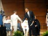Along with Burhoe; Admiral Robert J. Papp, Commandant of the U.S. Coast Guard; and Secretary of Homeland Security Janet Napolitano, who oversees the federal government branch which encompasses the Coast Guard, Obama greeted each of the cadets as they received their commissions and degrees.