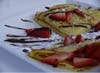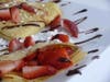 Lay each crêpe flat, fold in half, and then fold in half again to make a triangle. Open the edges of the folded crepe and place the desired amount of diced strawberries inside. Garnish each crêpe with additional strawberries and mocha sauce. Enjoy!
