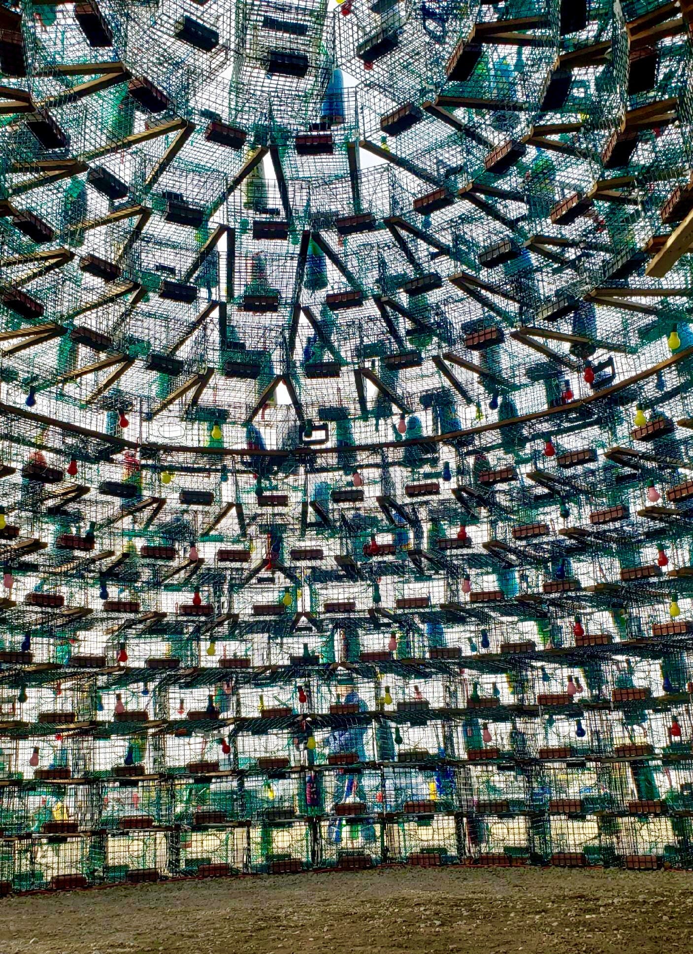 The 24-foot-high "tree" is made from 378 lobster traps and decorated with 360 buoys painted by artists and students. It is an homage to Christmas and to the Stonington fishing fleet.