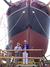 She was christened by Sarah 'Sally' Bullard, the great-great-great-granddaughter of Charles Waln Morgan, with a bottle of sea water from oceans the Morgan had sailed.