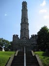 1814: Captain Joseph Kinney of Norwich, CT, was killed in action, and Captain Ephraim Shaylor of East Granby and Brigadier General Henry Leavenworth of New Haven were wounded. A marble Soldier’s Monument 22 feet in height in Buffalo, NY, (see photo in gallery), pays tribute to all of the Americans who died that day. The monument has an adjoining marble slab dedicated to the memory of Capt. Kinney, who was “shot through the breast” during the battle. Capt. Kinney’s brother dedicated the slab in 1829. Witnesses to the Battle of Niagara Falls were shocked at the carnage. After the American forces departed, British soldiers heaped up the dead Americans left in the field into a giant funeral pyre and burned all of the bodies.