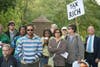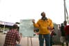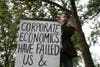 A motorist idling in traffic in front of the park at about 9 a.m. Wednesday morning, likely on his way to work, honked at the protestors, rolled down his window and called out in solidarity,” I lost my retirement. Can you help me find it?”