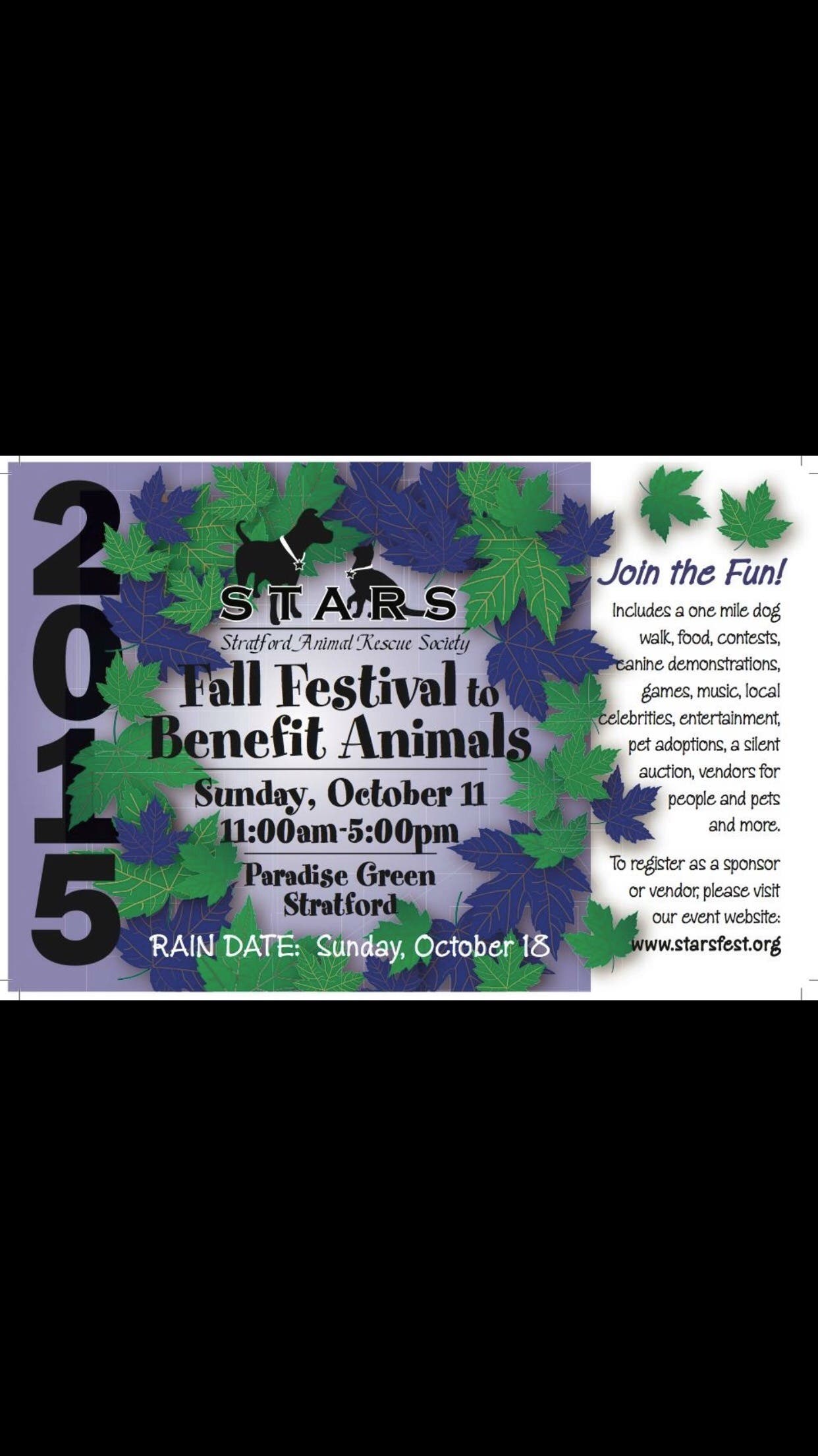 The 10th annual “Stars Fall Festival” in Stratford to raise money for animals will be held from 11 a.m. until 5 p.m. on Sunday, Oct. 11.