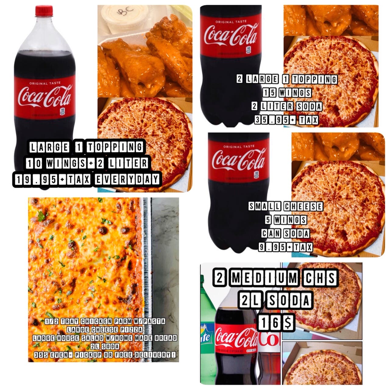 Di Roma’s has maintained our prices with no increase at all, even with the pandemic effecting food cost at an unprecedented rate. Di Roma’s continues to offer ever day specials, such as our 2 Medium Cheese and 2 Liter soda for 16$. Or a Large 1 Topping Pizza-10 wings- and a 2-liter soda for 19.95+ tax. We work extremely hard offering some of the most affordable prices in the area for our customers, ensuring our customers are satisfied with their meal every time!