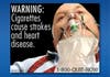 One image has a man blowing smoke out of a tracheotomy hole in his neck. Another shows a baby looking at a cloud of smoke as an adult makes to kiss his forehead from the other side. Then there's the close-up of rotting teeth and the one of the corpse with his chest stitched up.
