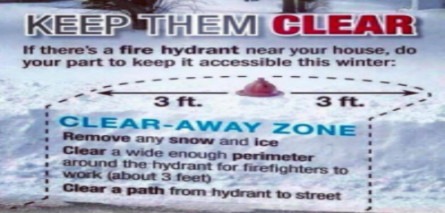 This winter, the Stratford Fire Department is asking residents and businesses to “adopt” their neighborhood fire hydrant and assure that it is accessible by creating a 3 foot clearance on all sides of the hydrant from snow and other obstructions.