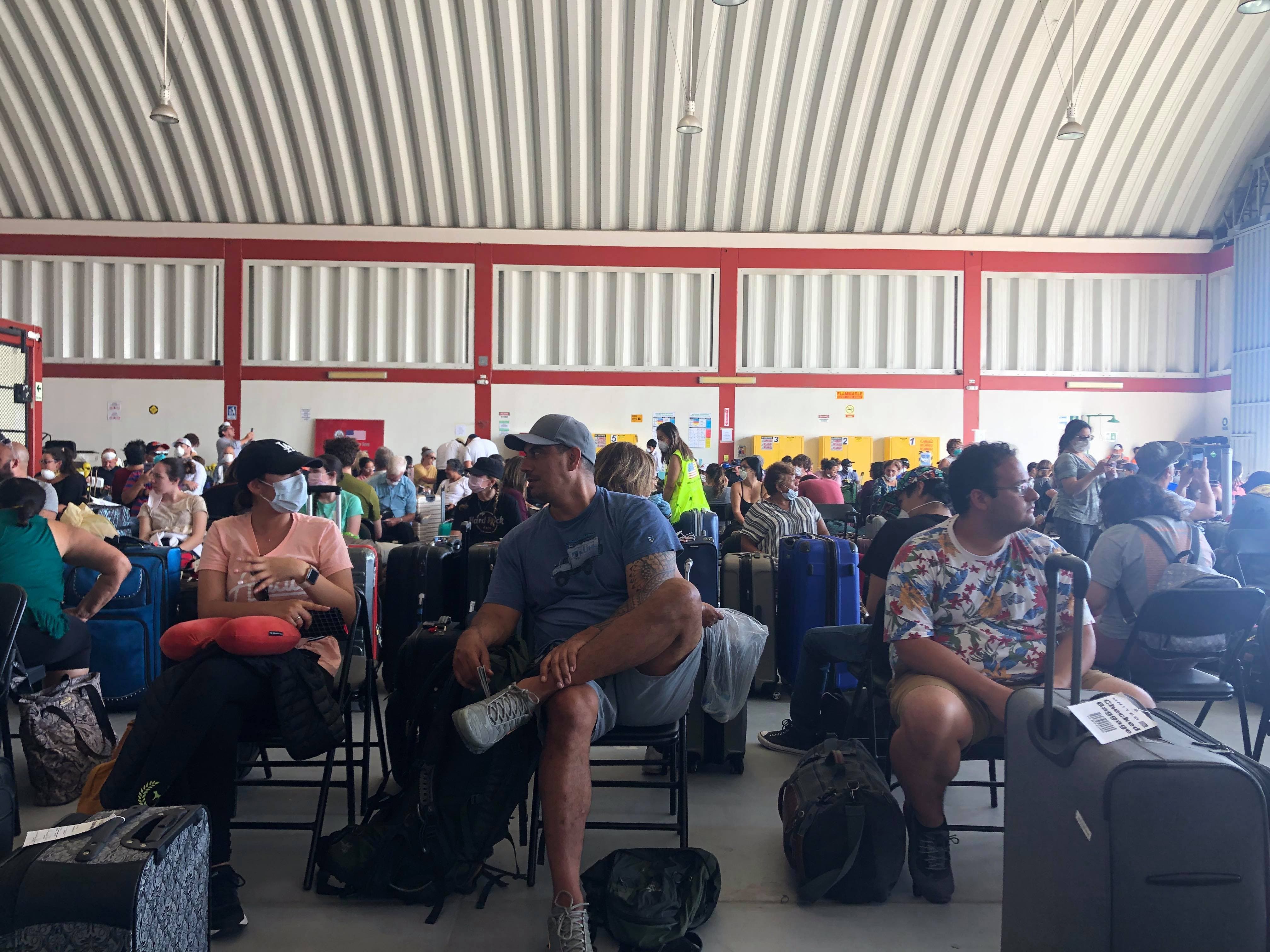 “It was much different than flying out of a regular airport,” she said on Messenger. “… They couldn’t do regular security checks on us so they had dogs sniff our bags.”