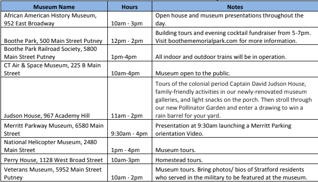 All museum fees are waived on Stratford Museum Day, however, donations are greatly appreciated, officials said.