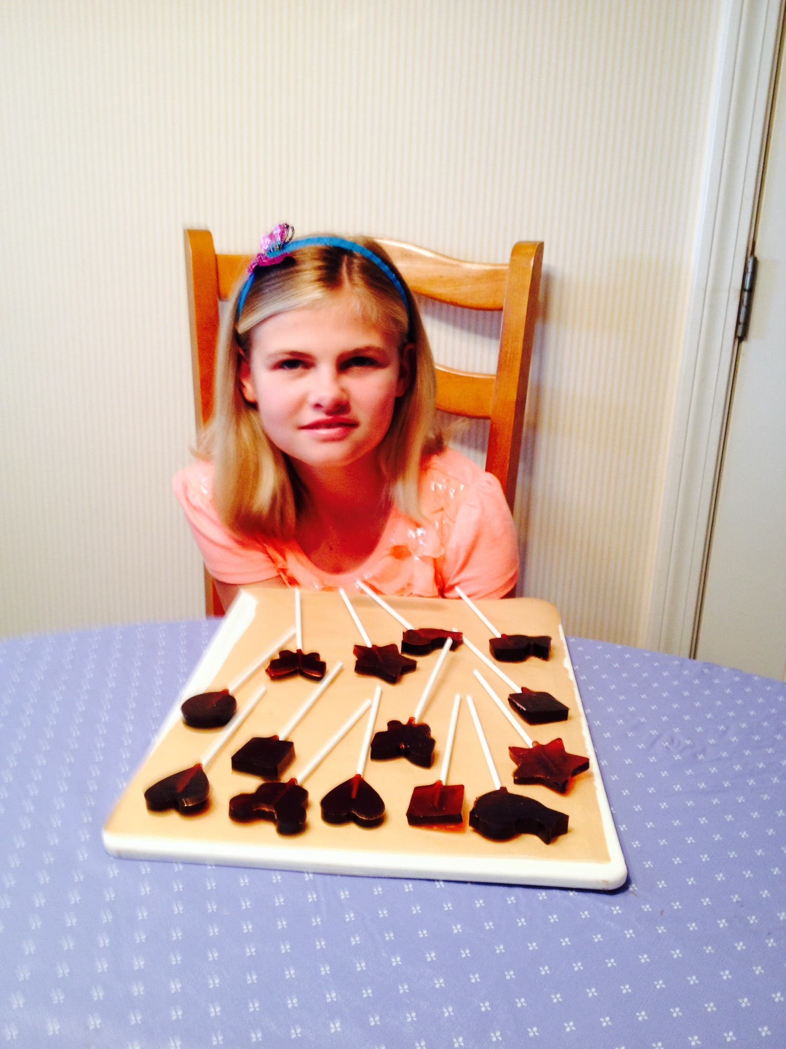 In the 2013-14 school year, LillyPops generated nearly $1,000 in sales, thanks to the many generous classmates, teachers and families that have purchased them. Lilly, with assistance from family members, helps make them all from scratch, boiling the ingredients, pouring them into molds, inserting sticks, letting them cool and harden, and finally wrapping them with specially made “LillyPops” tags.
