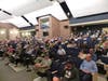 After a long night of long lines to receive a ballot, hear presentations and sometimes heated discussion, the question was called by an audience member at 8:35 p.m. After several objected to not having their chance to speak, the motion to vote was seconded and carried. Hundreds lined up to cast a yes or no ballot in one of two boxes at the front of the room.