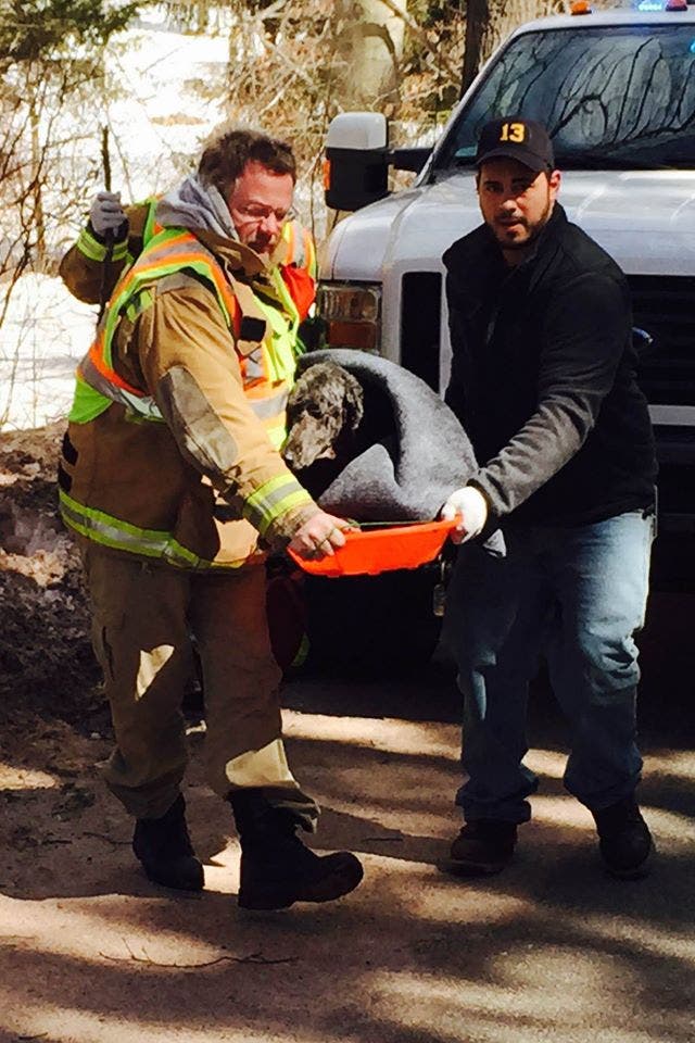 With the help of the dog's owner and three Haddam firefighters, the lethargic dog was transported to safety.