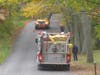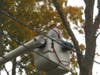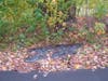 Fallen leaves on the side of the road acted as fuel and combined with the sparking live wire, igniting a fire beneath a utility pole.